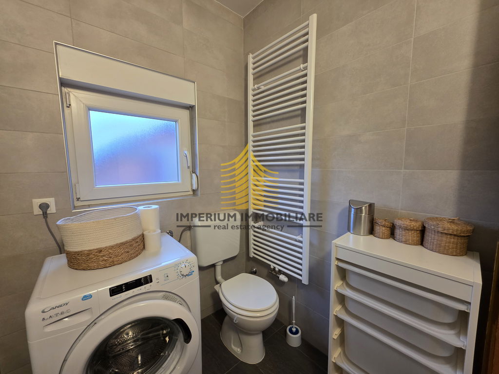 Kuhinja je opremljena svim potrebnim aparatima, uključujući perilicu posuđa, dok su perilica rublja, kada, TV, krevet i radni stol uključeni u opremu stana. Balkon površine 4,1 m2 pruža dodatni prostor za opuštanje ili uživanje na svježem zraku, dok dvorište omogućuje boravak na otvorenom u privatnosti.