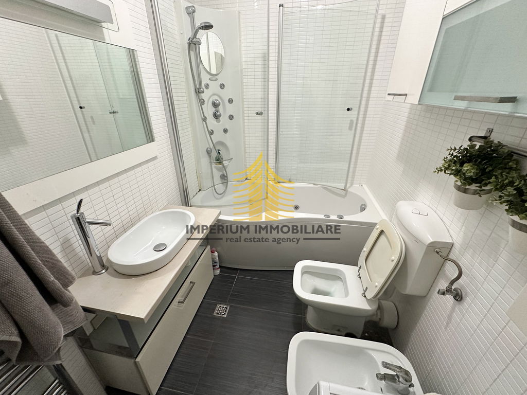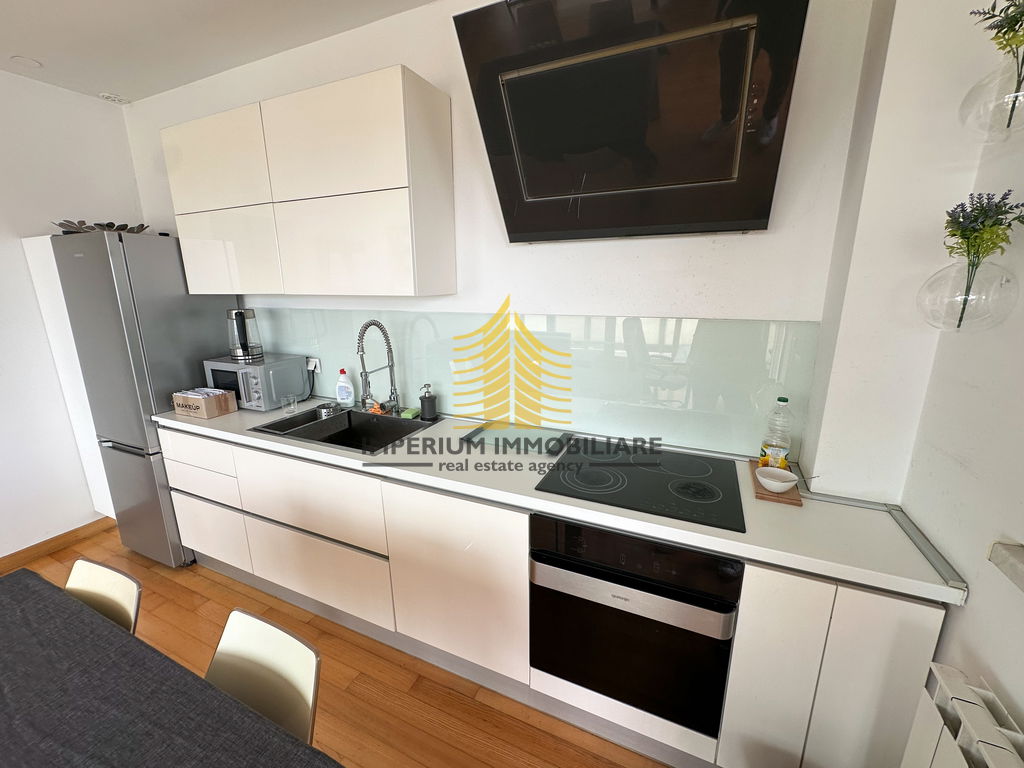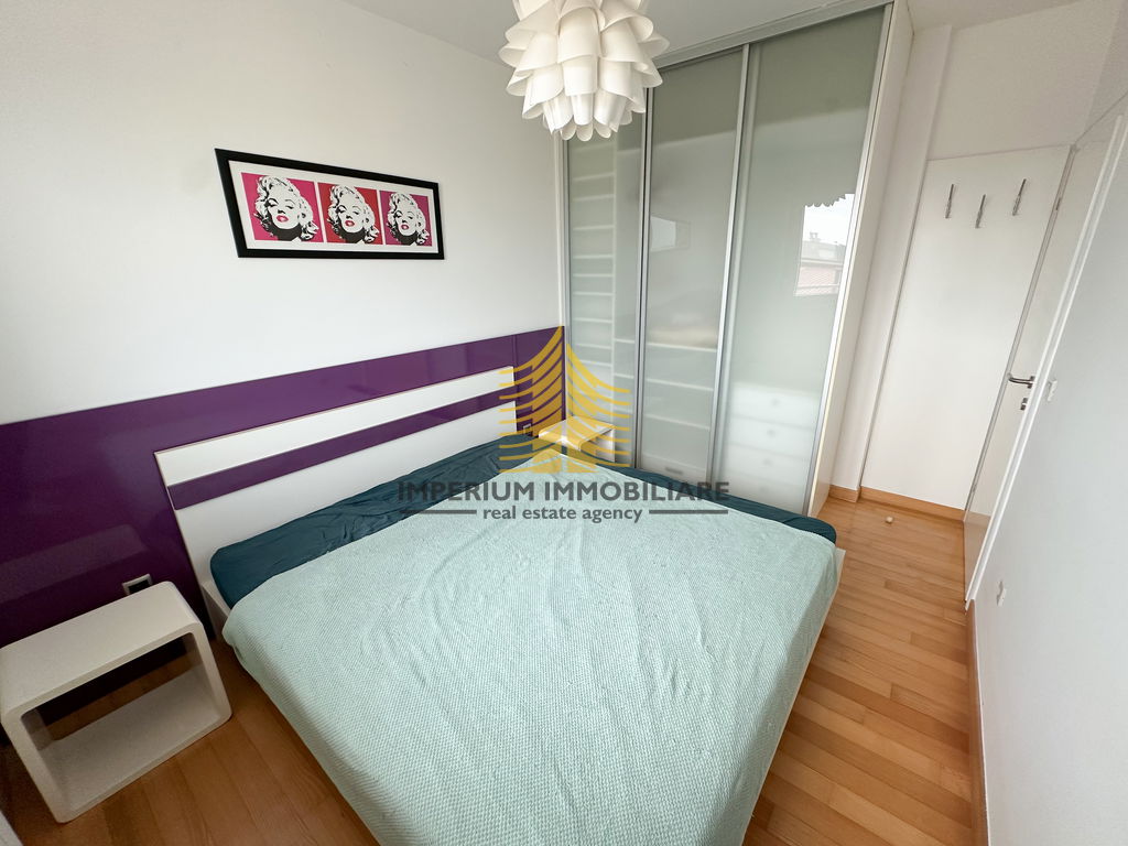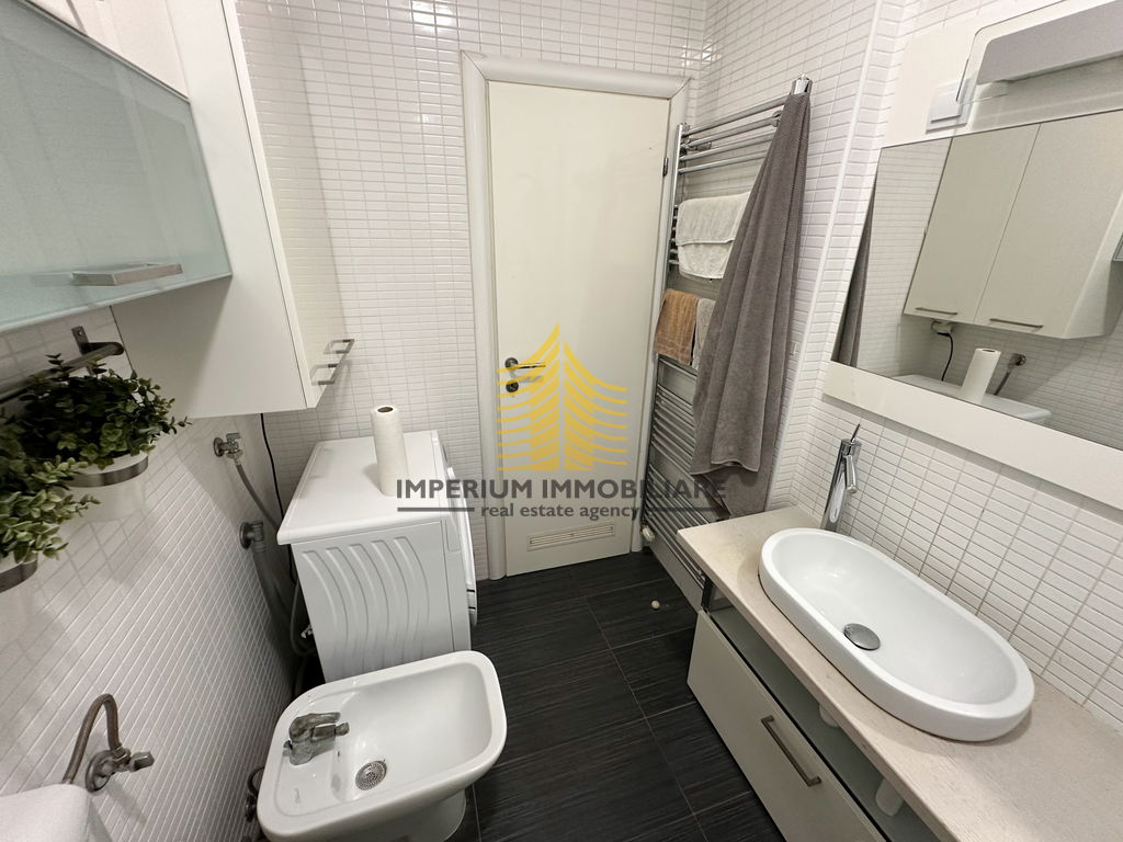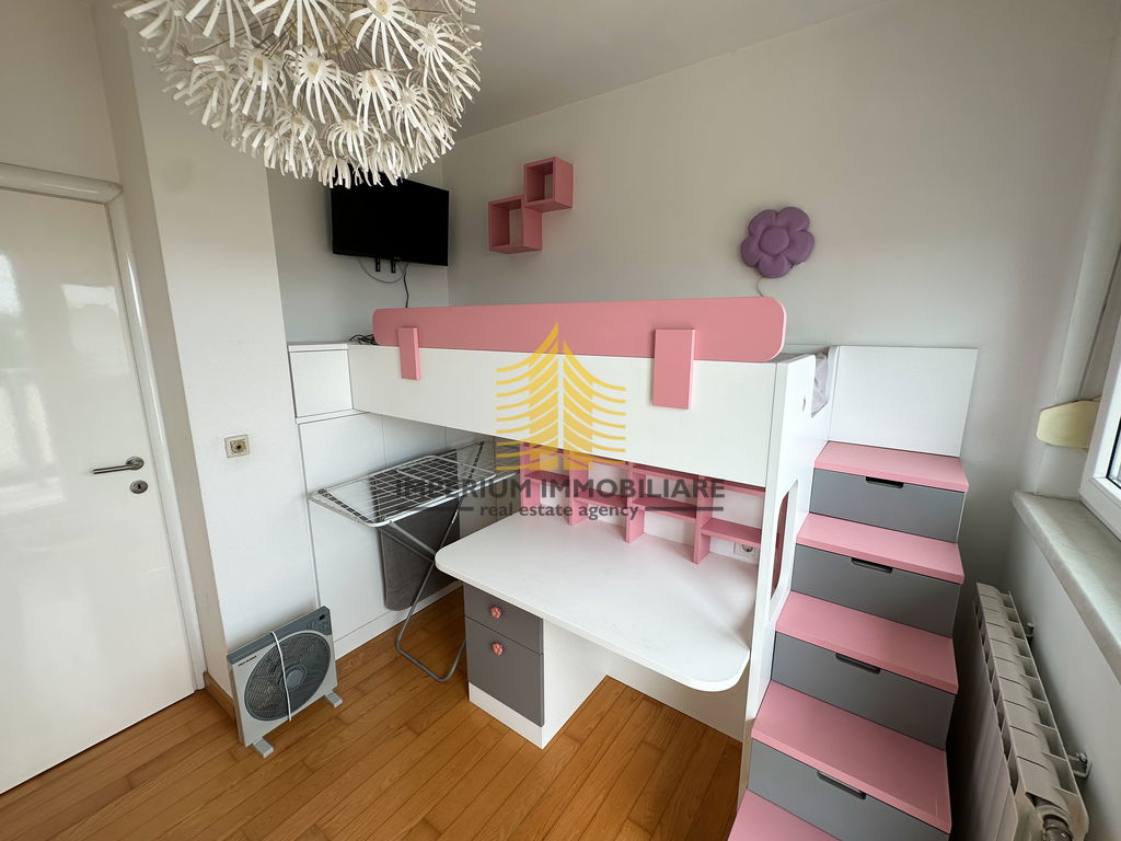 Interijer je opremljen kuhinjom s aparatima, perilicom posuđa, perilicom rublja, kadom, TV-om i krevetom, čime je stan spreman za useljenje bez potrebe za dodatnim ulaganjima.