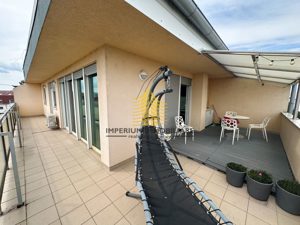 Stan raspolaže s dvije spavaće sobe, a ukupna površina omogućuje funkcionalan raspored prostorija. Posebna prednost je terasa koja omogućuje uživanje na otvorenom, dok zadnji kat jamči dodatnu privatnost i mir.