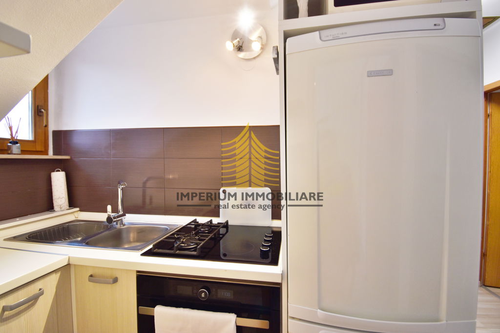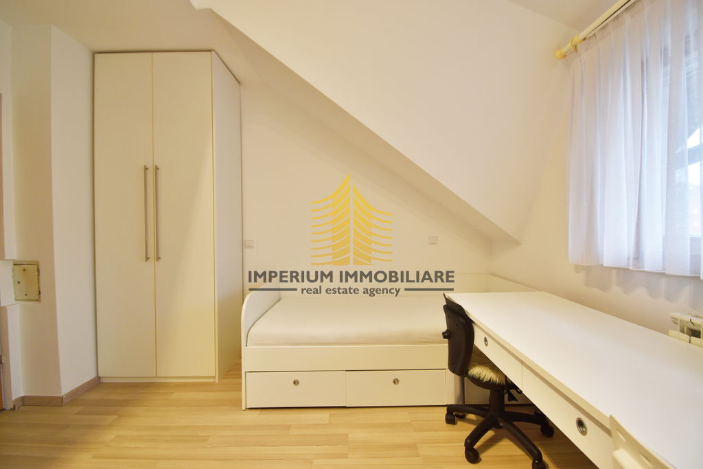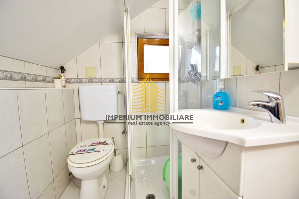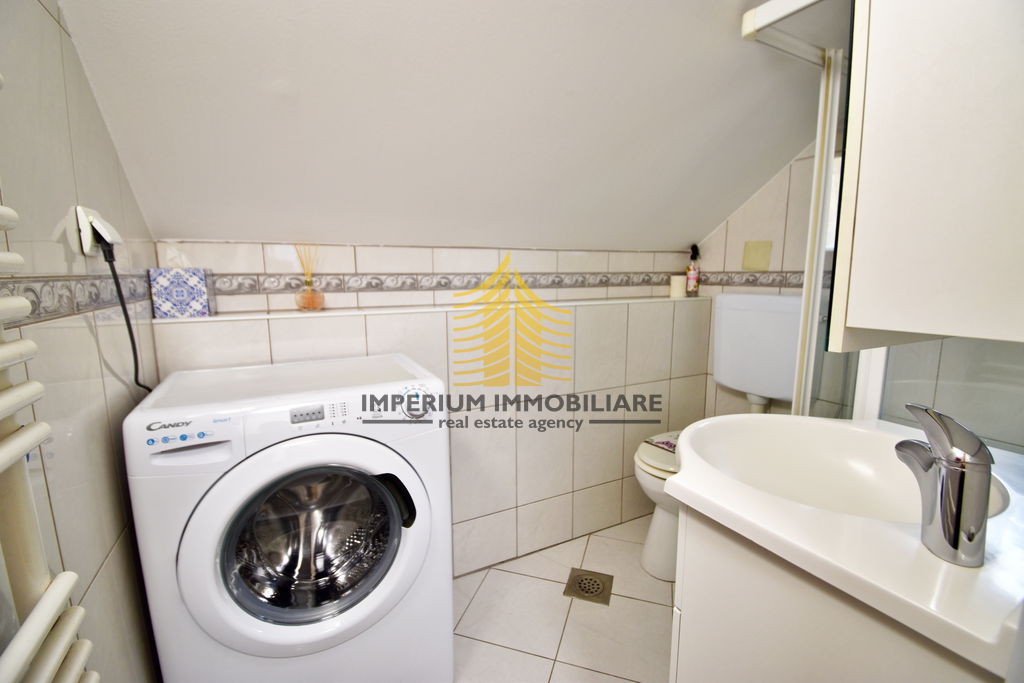 Stan raspolaže s dvije spavaće sobe, što ga čini idealnim za obitelji ili parove koji cijene dodatni prostor. Prostorije su prostrane i dobro osvijetljene, zahvaljujući povoljnom položaju na zadnjem katu zgrade. Uređena okućnica doprinosi ugodnoj atmosferi i pruža dodatni osjećaj privatnosti.