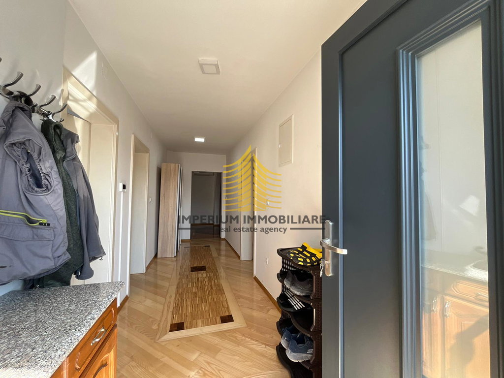 Dodatne pogodnosti uključuju balkon (13 m2), plinsko grijanje, klima uređaj i osigurano parkiralište. Okućnica pruža dodatnu privatnost i mir.