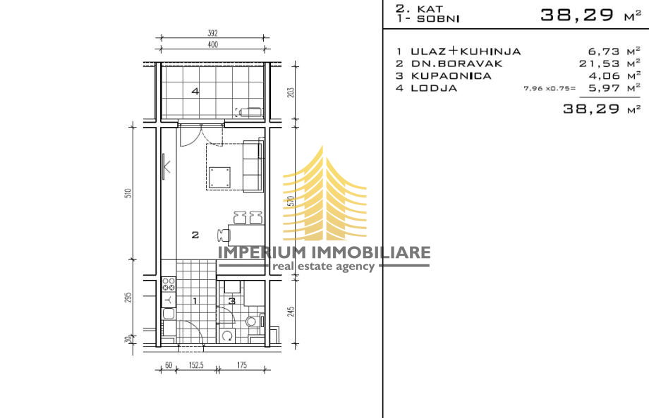 Stan je orijentiran prema sjeveru, što osigurava ugodnu temperaturu i dovoljno prirodnog svjetla tijekom dana. Garsonijera raspolaže jednom spavaćom sobom, a dodatnu vrijednost pruža vlastita lođa, savršena za opuštanje ili uživanje u pogledu.