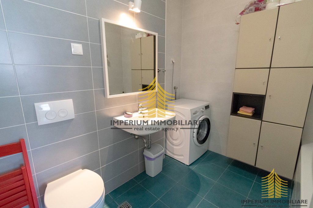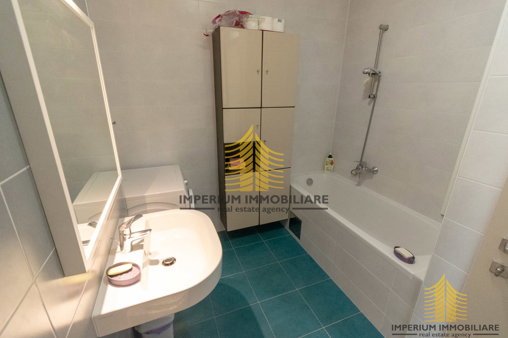 Unutrašnjost stana opremljena je funkcionalnom kuhinjom s aparatima, perilicom rublja, kadom, TV uređajem te krevetom i ormarima. Centralno grijanje i klima uređaj omogućuju ugodnu temperaturu tijekom cijele godine, dok je odvojen sanitarni čvor dodatna prednost.