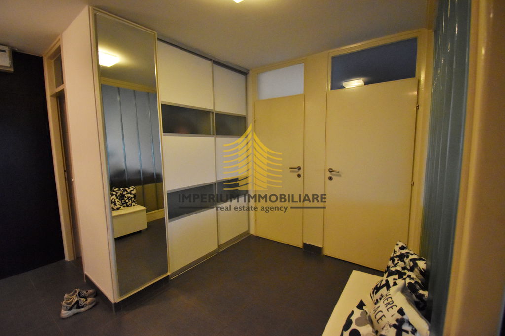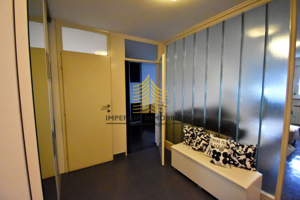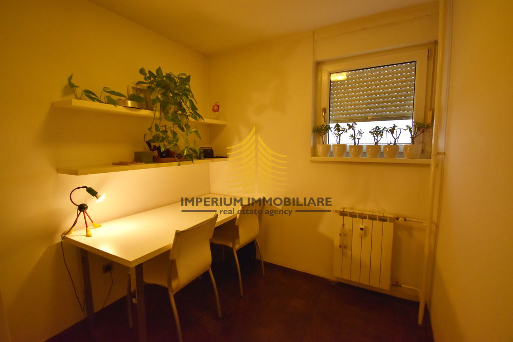 Stan raspolaže s dvije sobe koje su trenutno opremljene kao spavaća i radna soba, uz dnevnu sobu, kuhinju, kupaonicu i WC. To ga čini pogodnim za obitelji, parove ili pojedince koji traže dodatni prostor. Dodatnu vrijednost donosi lođa, idealna za uživanje u pogledu i suncu. Za lakši pristup zgradi na raspolaganju je dizalo.