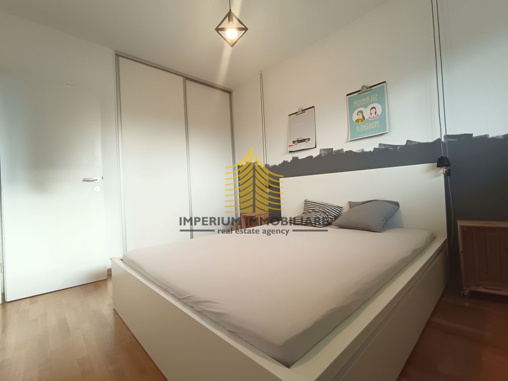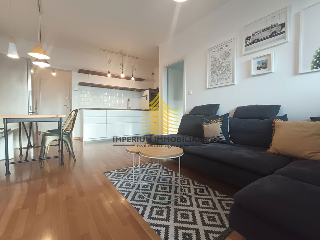 U ponudi je moderan stan za najam, površine 49,73 m2, smješten na trećem katu peterokatnice izgrađene 2016. godine, na atraktivnoj lokaciji Trešnjevka – Sjever, Trešnjevka.