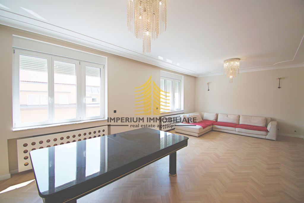 Stan se nalazi u reprezentativnoj zgradi u središtu grada, što ga čini atraktivnim izborom za one koji cijene blizinu svih važnih sadržaja, kulturnih institucija, poslovnih zona i javnog prijevoza. Prostrana površina omogućuje udoban život, a raspored uključuje tri spavaće sobe i dnevni boravak, s orijentacijom na jug, istok i sjever, što osigurava obilje prirodnog svjetla tijekom cijelog dana.