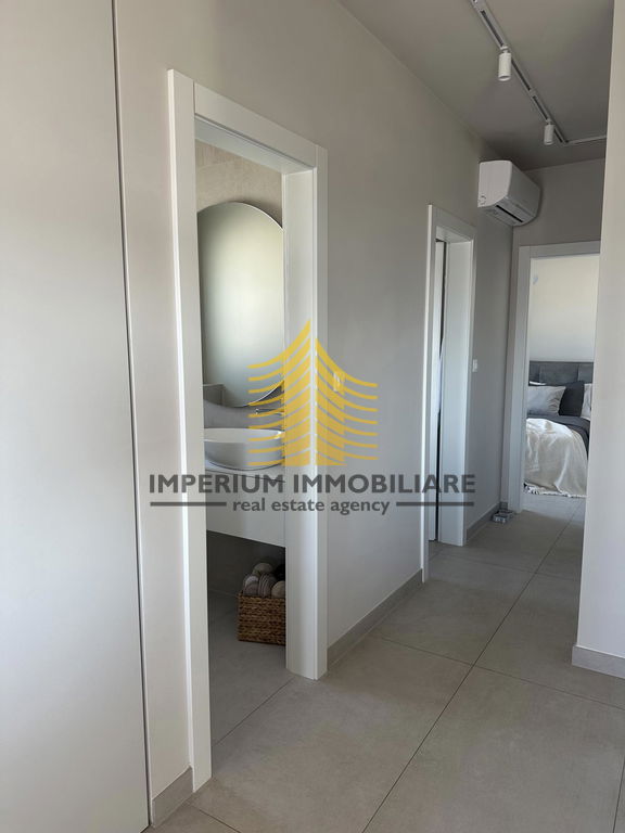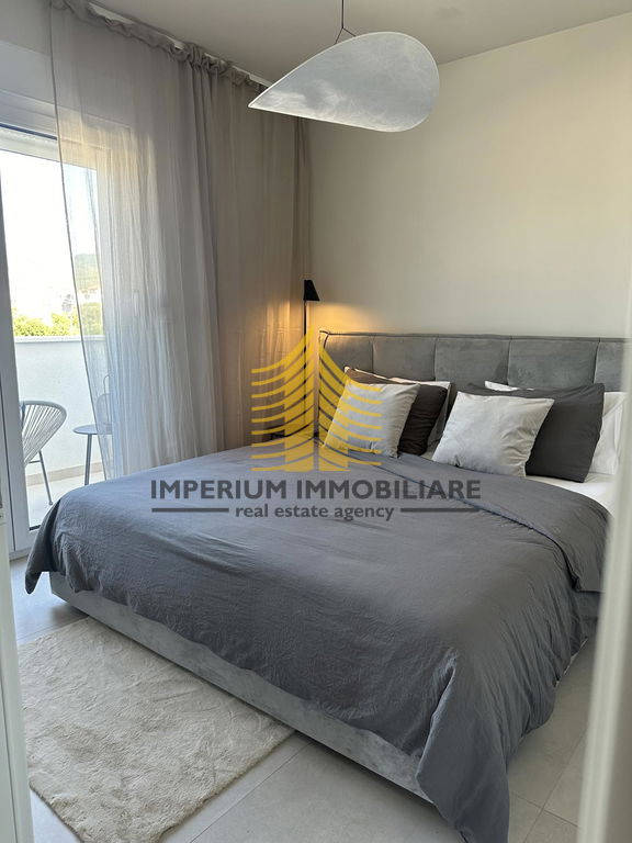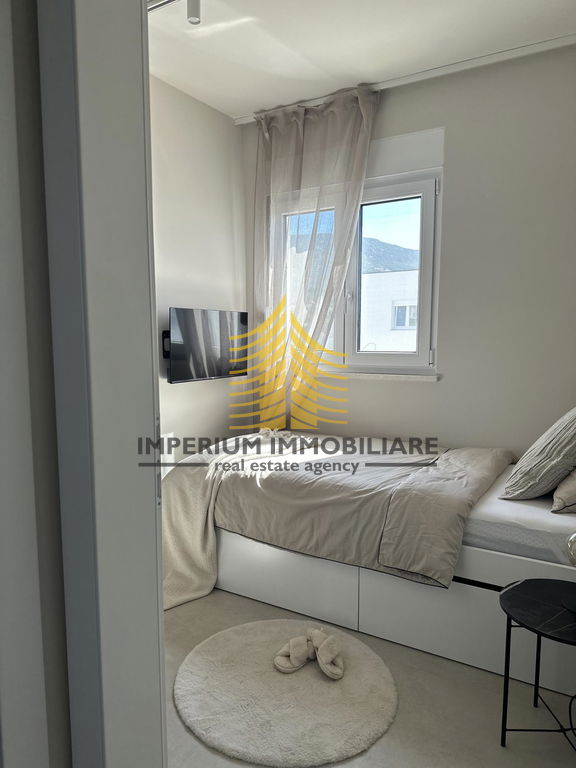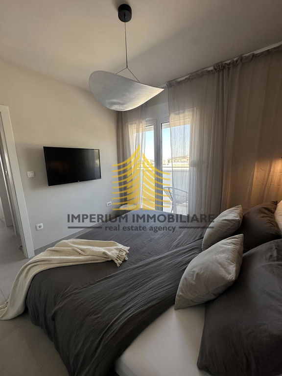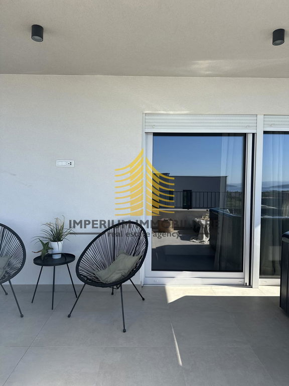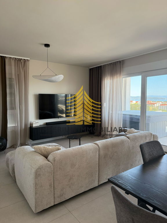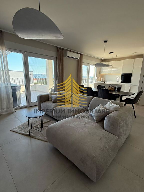 Stan se sastoji od tri spavaće sobe i prostranog dnevnog boravka, što omogućuje praktičnu organizaciju prostora za obiteljski život ili ugodan boravak. Raspored prostorija je funkcionalan, a terasa pruža dodatni prostor za opuštanje s lijepim pogledom na more i okolnu prirodu. U stanu je ugrađena klima uređaj za grijanje i hlađenje, a pripada mu i ostava/skladište te osigurano parkiralište.