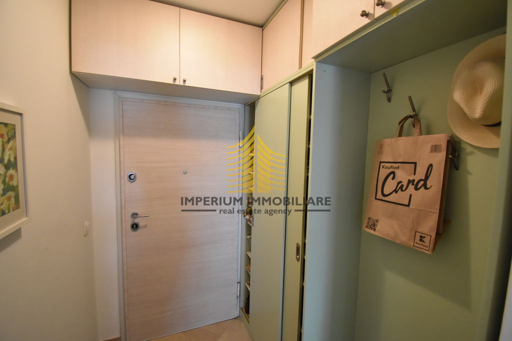 Opremljen je kuhinjom s aparatima, perilicom posuđa, perilicom rublja, kadom, TV-om, krevetom i radnim stolom. Sigurnost i udobnost osiguravaju alarm, video nadzor, smart home sustav, dizalo i optička veza. Grijanje je plinsko etažno te ima klima uređaj.