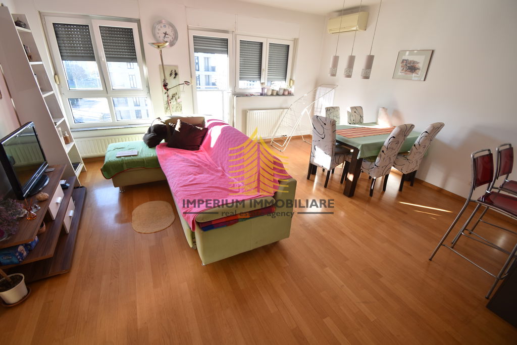 Prodaje se trosobni stan s balkonom površine 70 m2, smješten na 6. katu moderne zgrade sa sedam katova u atraktivnom dijelu Novog Zagreba – Središće.