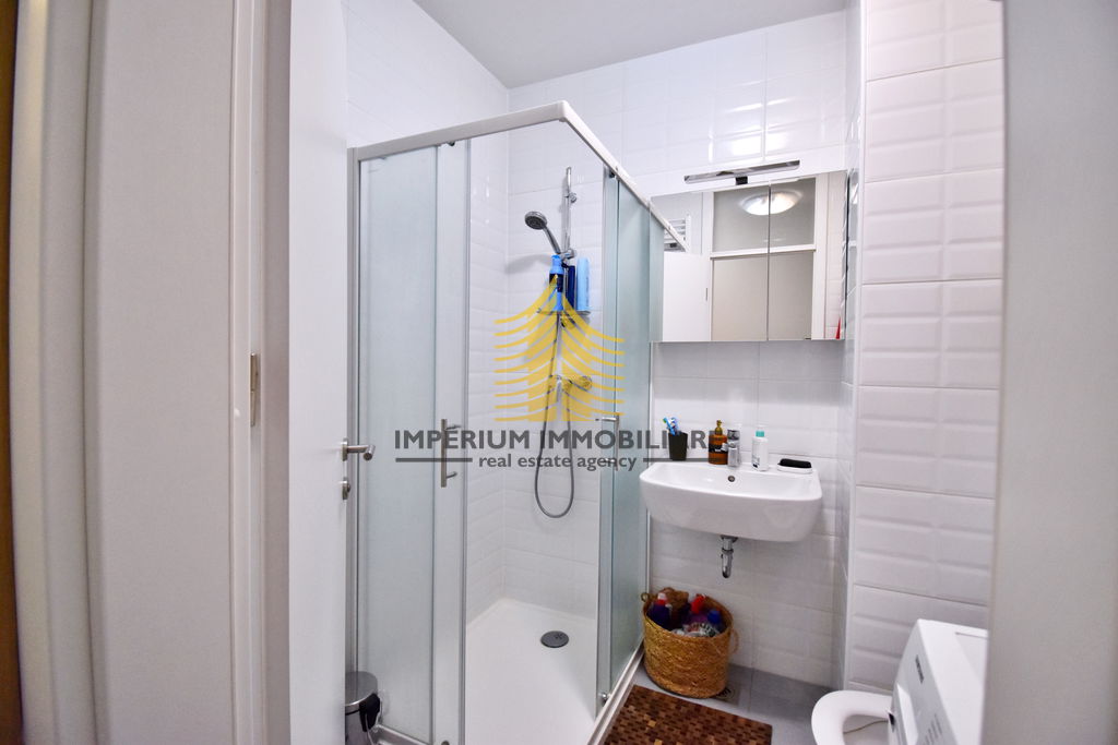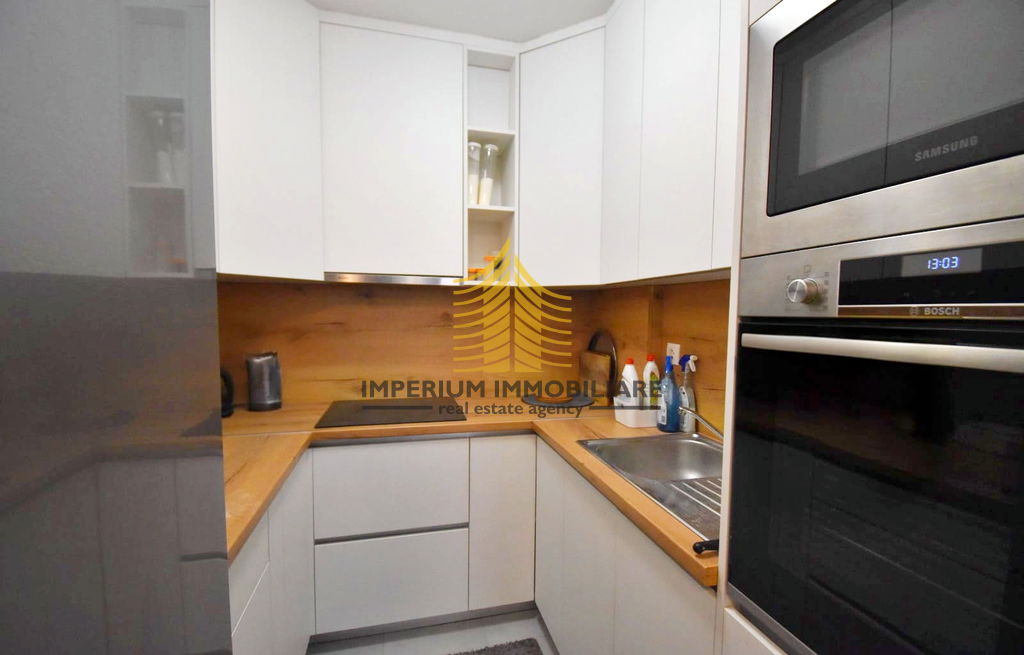 Stan je funkcionalno organiziran s jednom spavaćom sobom, dnevnim boravkom, kupaonicom te moderno opremljenom kuhinjom sa svim potrebnim aparatima. Dodatnu udobnost pružaju lođa i dizalo, dok su za sigurnost ugrađena protuprovalna vrata. Grijanje je osigurano preko toplane, a za dodatni komfor tijekom cijele godine tu je klima uređaj. Optički internet omogućuje brzu i pouzdanu povezanost.