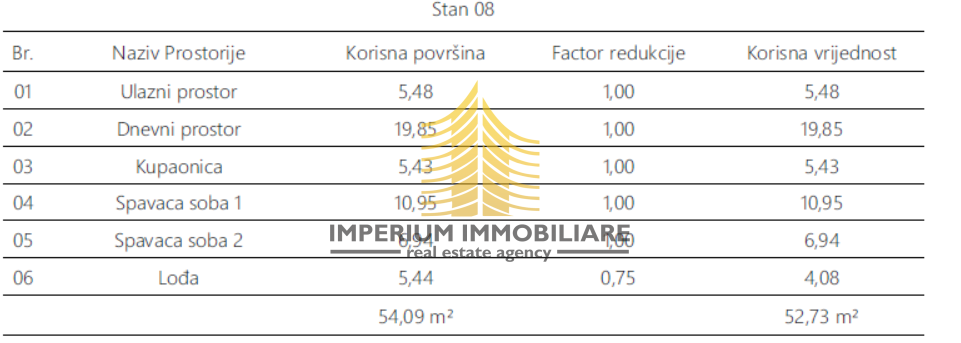 Na prodaju je moderan dvosobni stan površine 54,09 m2, smješten na prvom katu zgrade s ukupno četiri kata u atraktivnom dijelu Pule, Monvidal. Stan se nalazi u novogradnji, s planiranim završetkom izgradnje 2027. godine, što budućim vlasnicima osigurava suvremen standard stanovanja u mirnoj i poželjnoj četvrti.