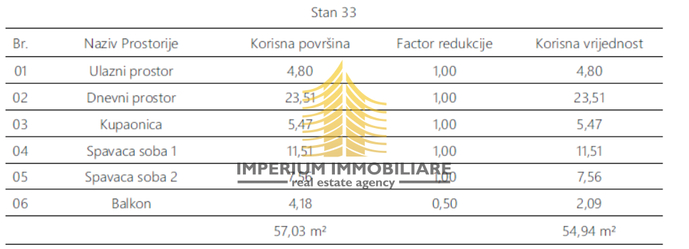 Stan se sastoji od dvije spavaće sobe i dnevnog boravka, što ga čini idealnim izborom za obiteljski život ili investiciju. Orijentacija stana je prema sjeveru, što doprinosi ugodnoj temperaturi tijekom cijele godine. Uz dnevni boravak, stan ima balkon površine 4,18 m2 koji omogućuje dodatni prostor za opuštanje ili druženje.
