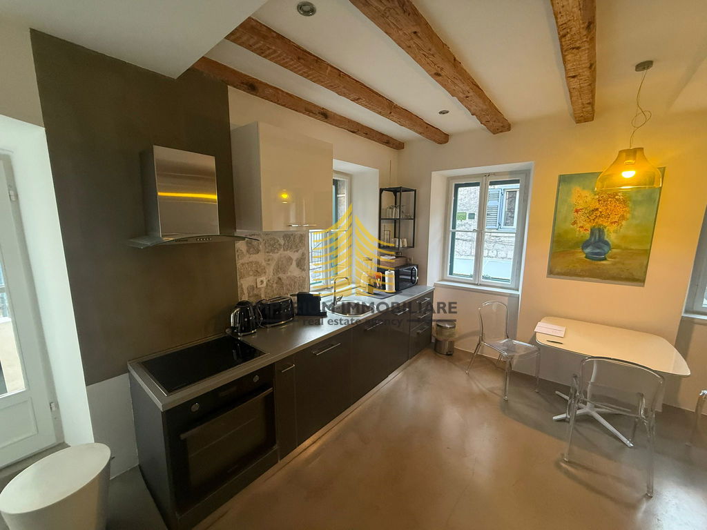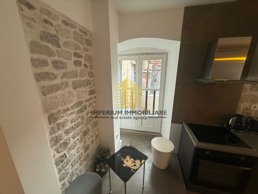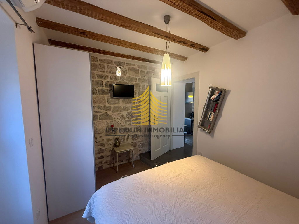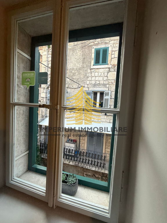 Na prodaju je stan 1,5-sobni (1S+DB) površine 50 m2, smješten na trećem katu, u samom centru Dioklecjanove palača , u atraktivnom starogradskom dijelu neposredno pored mora.