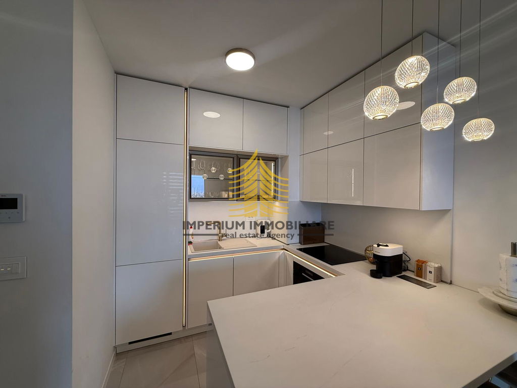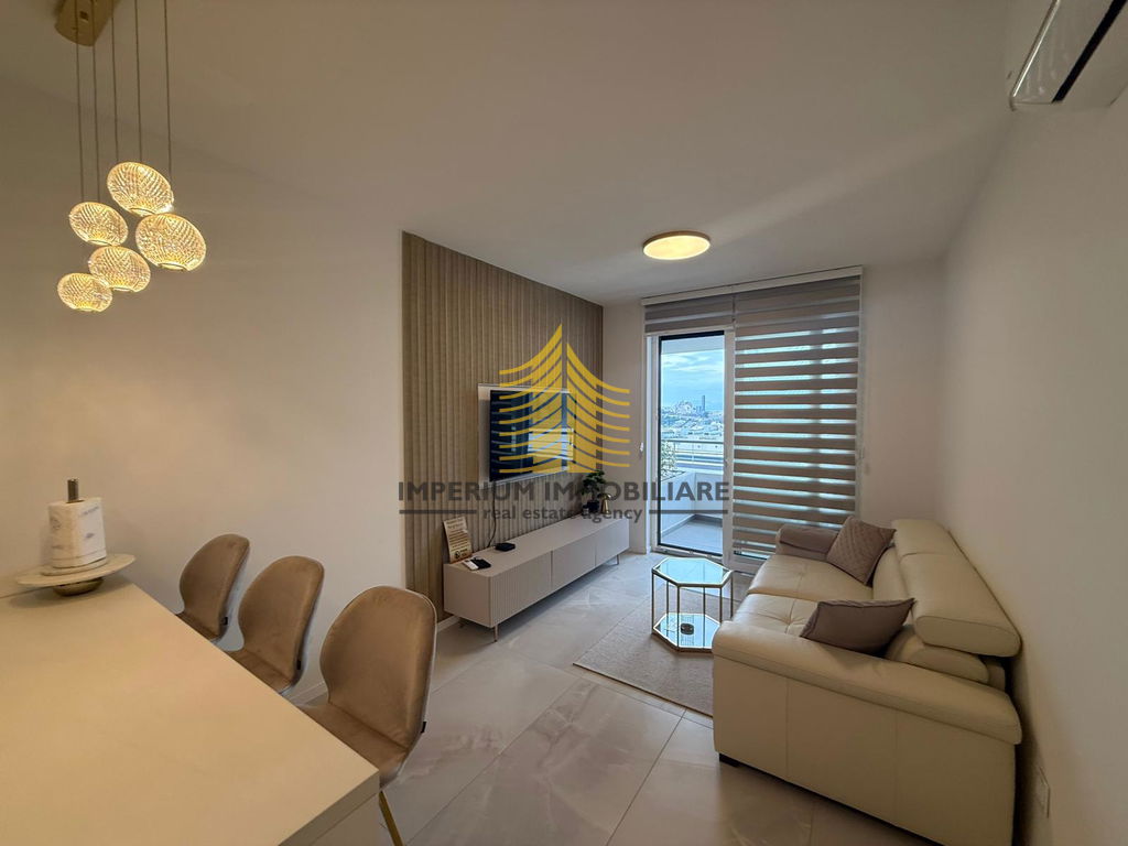 Stan se ističe svojom dizajnerskom uređenosti te obiljem prirodnog svjetla, zahvaljujući vrlo sunčanoj jugozapadnoj orijentaciji. Prostrani balkon površine 6 m2 pruža lijep pogled, uključujući i pogled na more, što dodatno doprinosi osjećaju ugode i privatnosti. Raspored s jednom spavaćom sobom čini ga idealnim izborom za samce, parove ili kao investicijsku priliku.