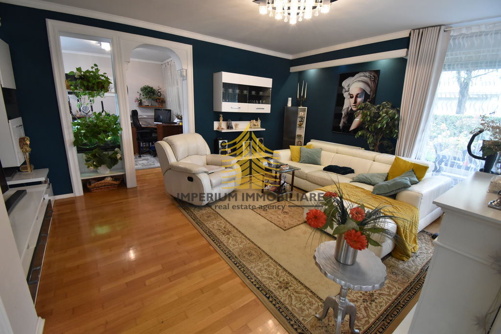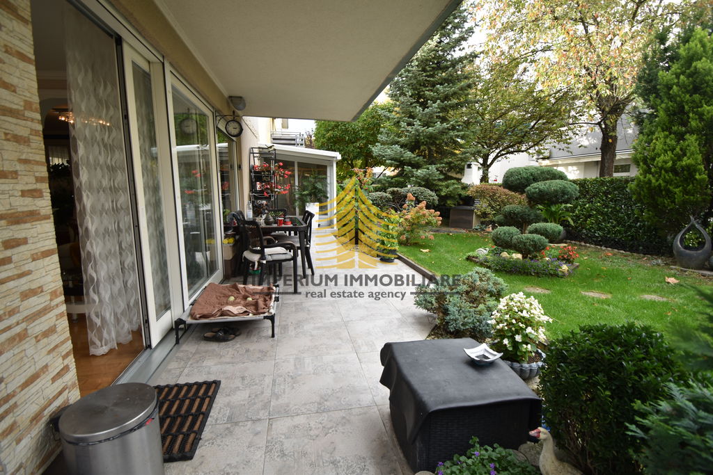 Prodaje se prostrani trosobni stan površine 113 m2 s pripadajućim vrtom 175 m2, garažom 22 m2 i spremištem 7m2, ukupne neto površine 160 m2. Smješten u prizemlju zgrade izgrađene 2008. godine, u mirnom i uređenom dijelu popularnim Hoto vilama.