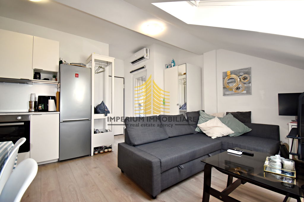 Ugrađeni su Velux krovni prozori izvrsne kvalitete. Stan je u potkrovlju no dio krova ne umanjuje visinu kroz cijelu kvadraturu stana.