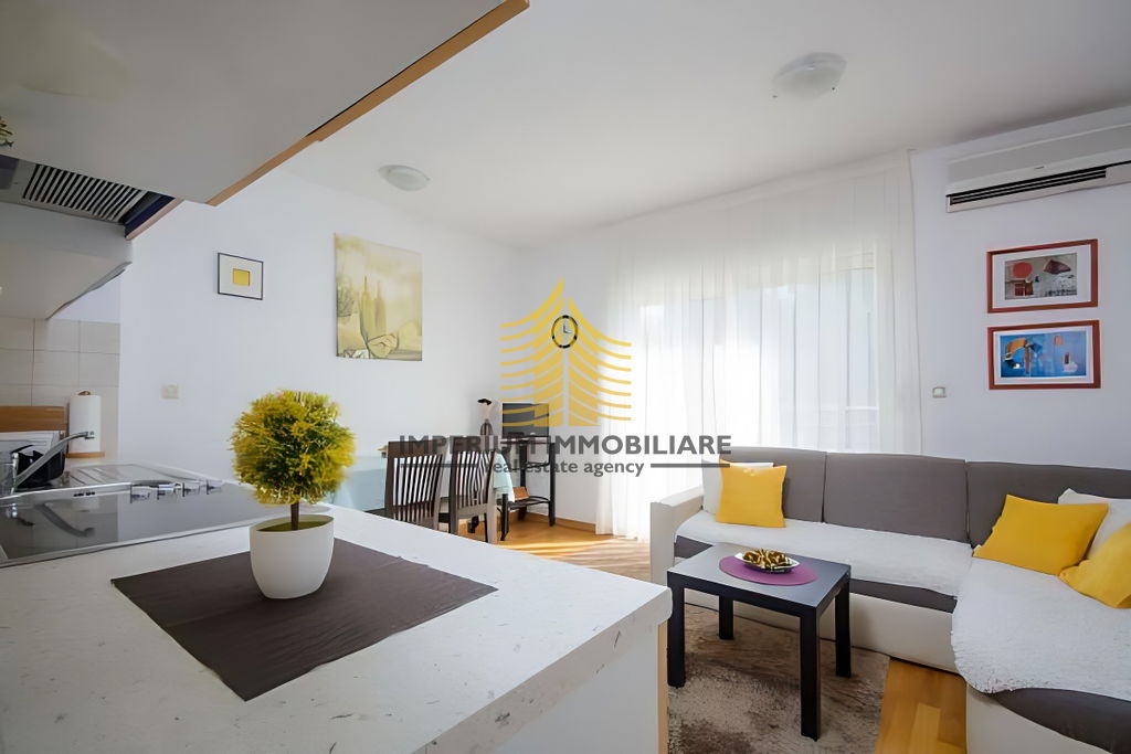 Ovaj 1,5-sobni stan (1S+DB) nudi funkcionalan raspored i jugozapadnu orijentaciju, što osigurava obilje prirodnog svjetla i vrlo sunčanu atmosferu tijekom cijelog dana. Posebna prednost stana je lođa s koje se pruža lijep pogled na more. Protuprovalna vrata pružaju dodatnu sigurnost, dok je parkiralište osigurano za vlasnike.