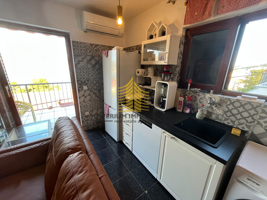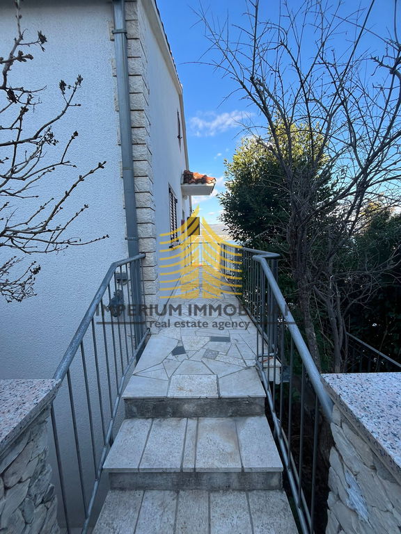Stan ima pristup asfaltiranom putu, vrtu, kao i vlastitom parkiralištu, što dodatno doprinosi udobnosti i funkcionalnosti svakodnevnog života. Smješten na zadnjem katu, stan uživa mirnu lokaciju, obilje prirodnog svjetla te izvanredan pogled na more i okolnu prirodu. Blizina mora i prirodnog okruženja čini ovu nekretninu savršenim izborom za sve koji traže sklad između urbanog života i opuštanja u prirodi. Dodatno je na raspolaganju roštilj, što omogućuje uživanje u druženjima na otvorenom.