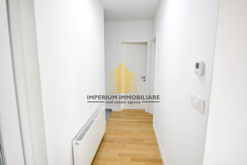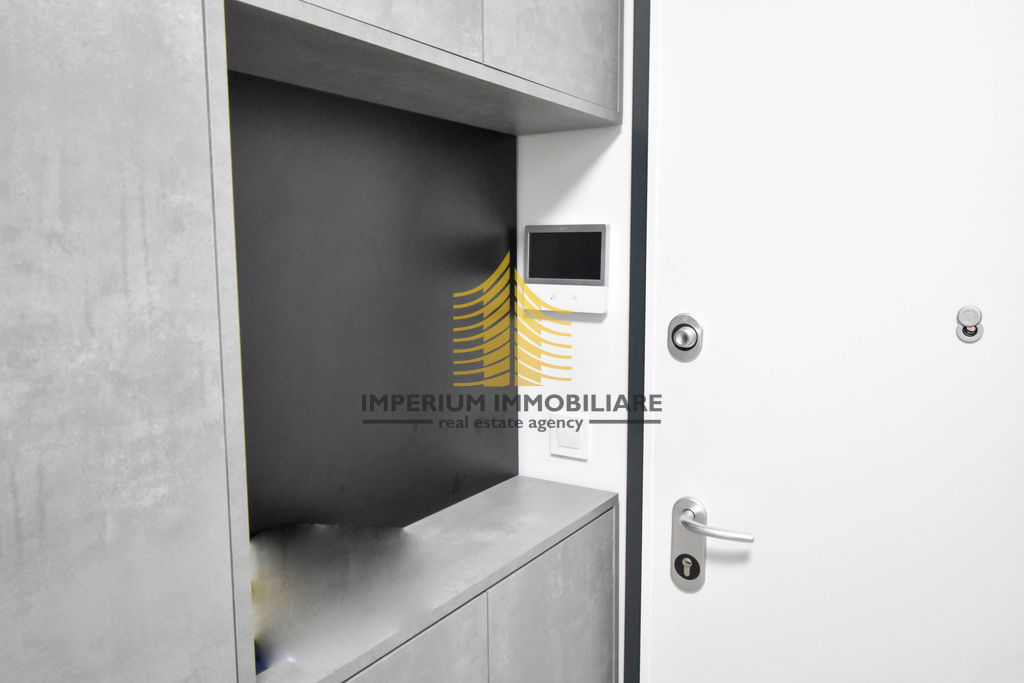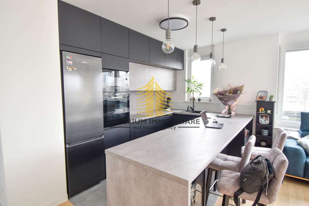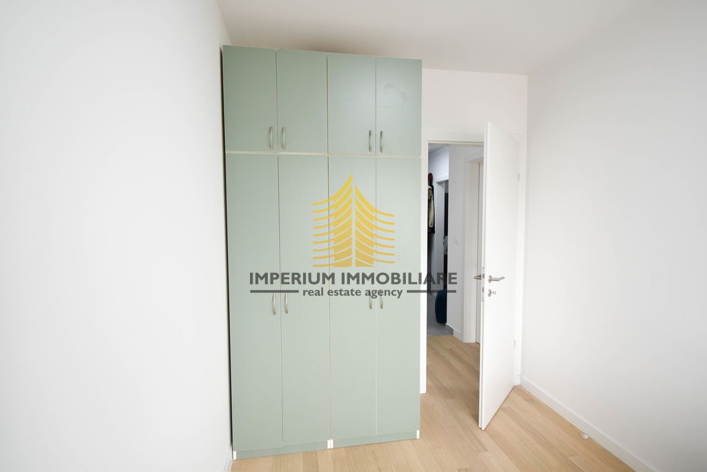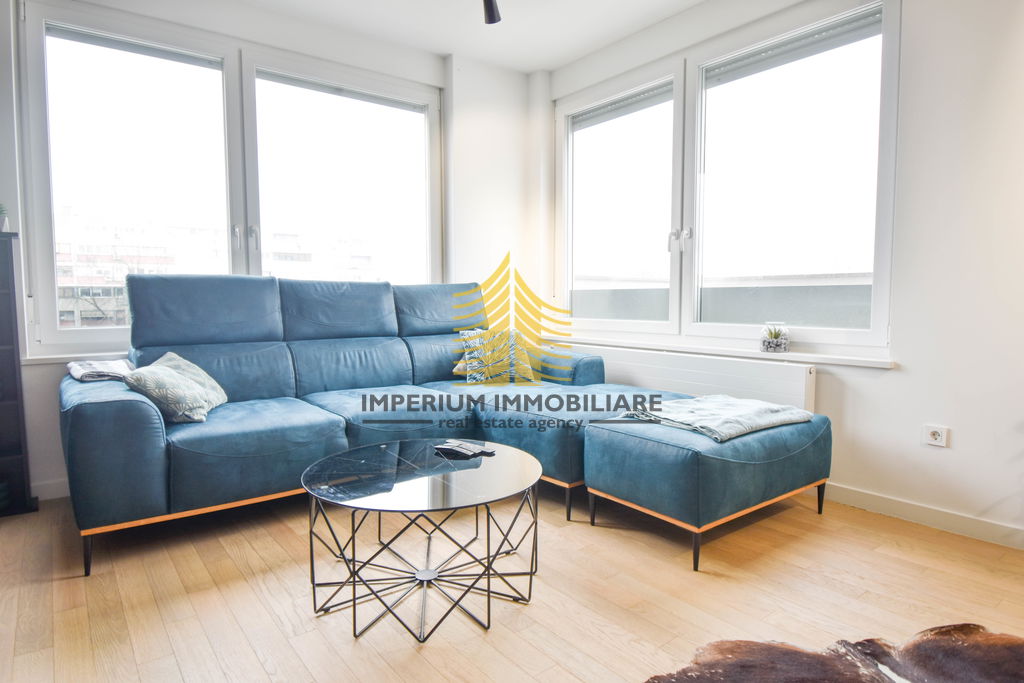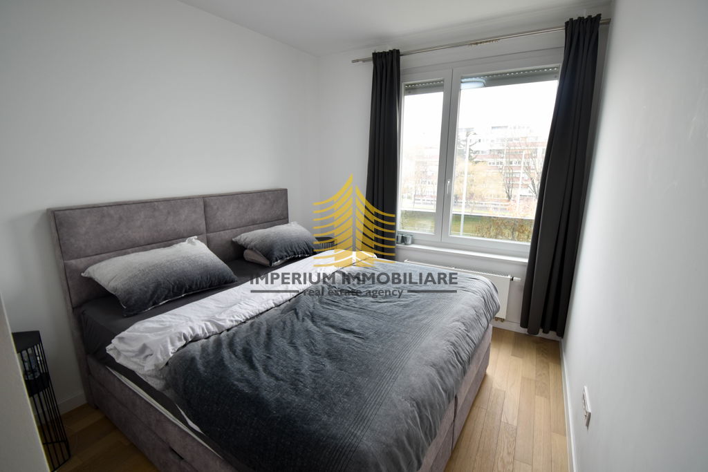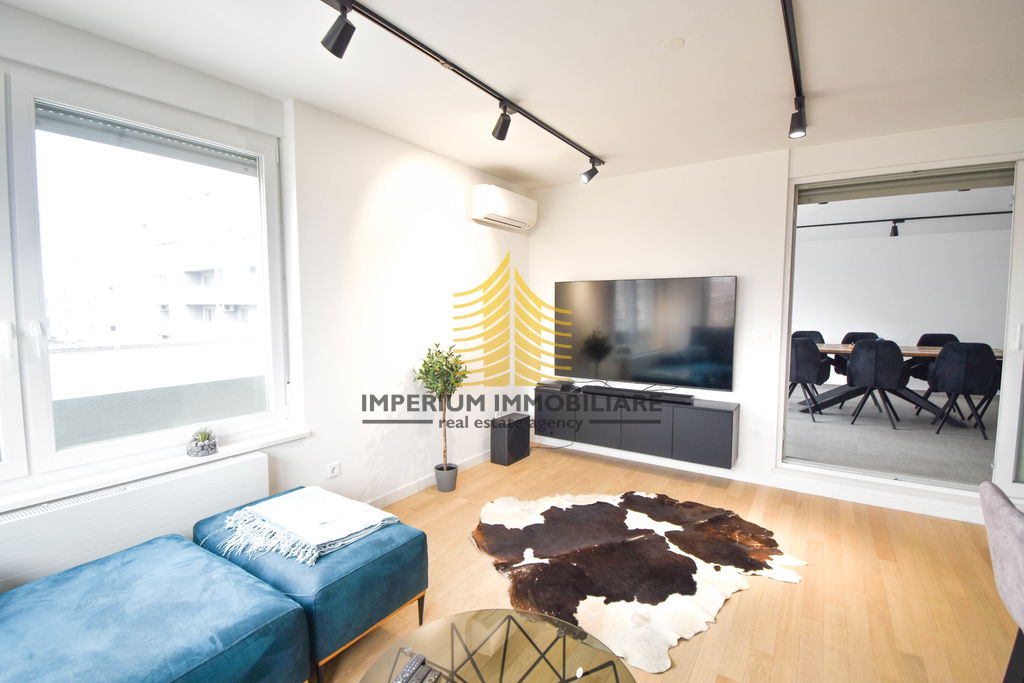 Stan se sastoji od prostrane sobe, dnevnog boravka, te spavaće sobe s luksuznim walk-in ormarom koji osigurava optimalan prostor za pohranu. Otvoreni koncept dnevnog boravka stvara širok i svijetao prostor, dok velika staklena stijena iz blagovaone omogućuje panoramski pogled na grad. Zahvaljujući orijentaciji na sjever, jug i zapad, stan je obasjan prirodnim svjetlom tijekom cijelog dana, čineći svaki kutak doma ugodnim i prozračnim.