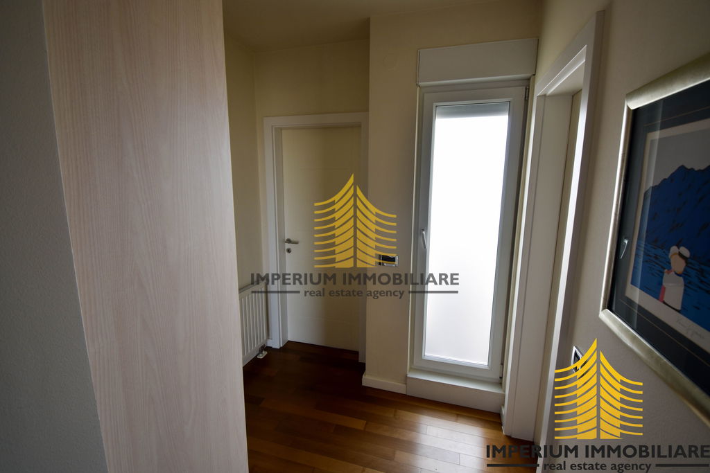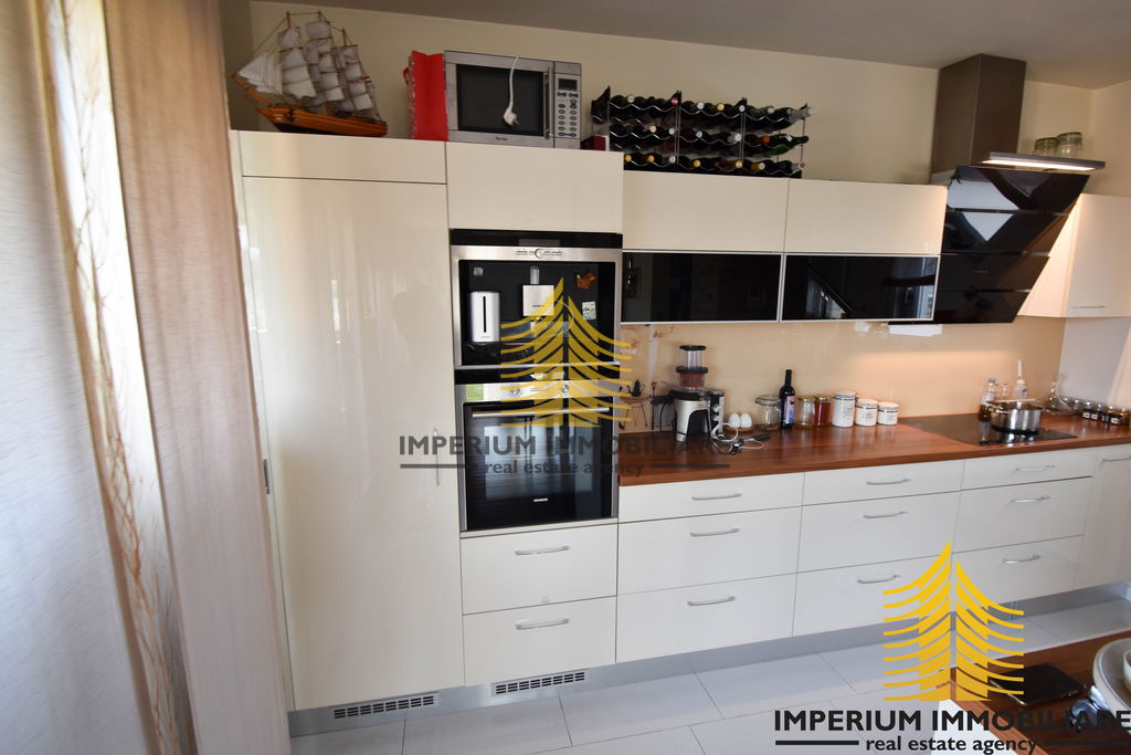 Potpuna Opremljenost: Stan je u potpunosti opremljen visokokvalitetnim materijalima i modernim uređajima, uključujući bajcani hrastov parket unutar stana i podove od tikovine na terasama.
