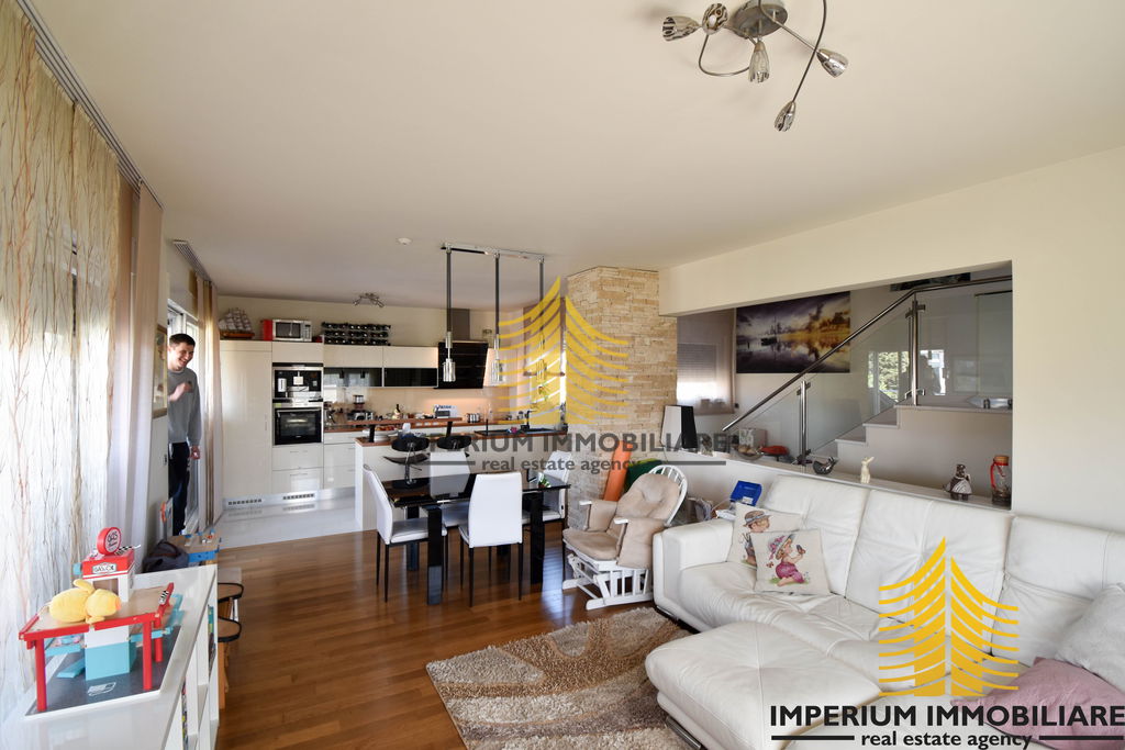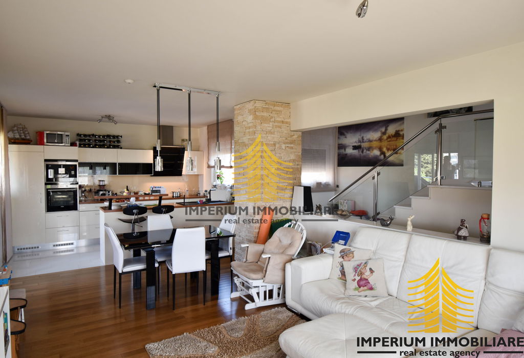 Prodaje se prekrasan trosobni stan penthouse" koji se prostire na ukupnoj površini od 123,68 m2. Useljen 2012. godine od strane prvih vlasnika, ovaj stan nudi neusporedivu udobnost i luksuzni životni prostor.