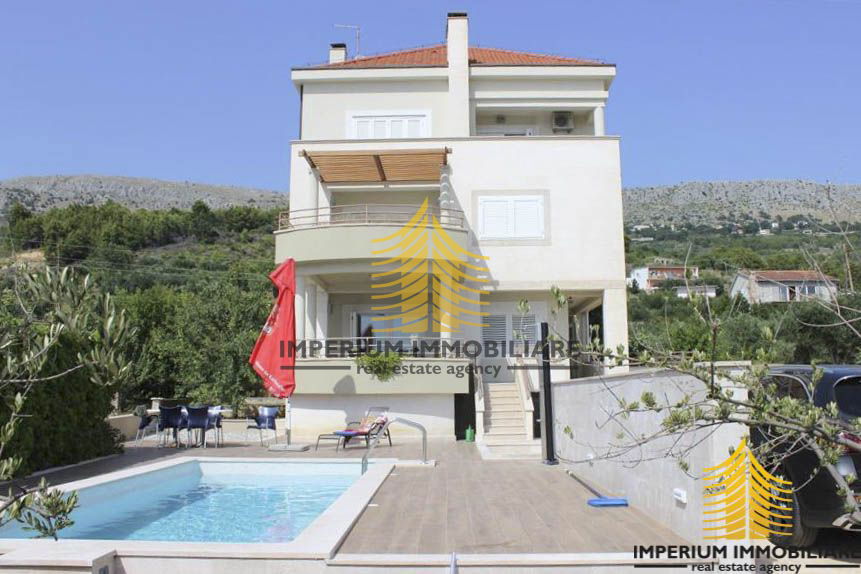 Ova luksuzna obiteljska kuća smještena je na savršenoj lokaciji, u neposrednoj blizini prekrasnih šljunčanih plaža i svih potrebnih sadržaja za udoban život. Kuća se prostire na četiri kata, a nudi vrhunski uređen interijer, kao i prostrano dvorište s bazenom.