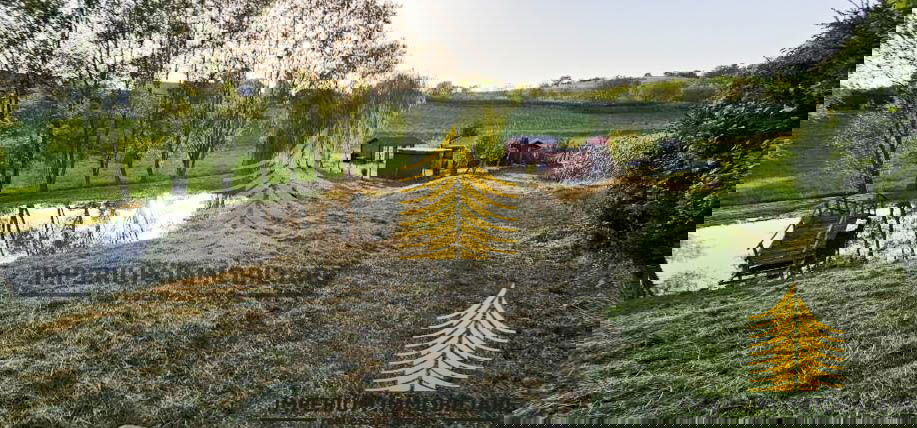 Crvenom bojom je omeđeno poljoprivredno zemljište koje je također na prodaju (sa ribnjakom i 3 drvene kućice).